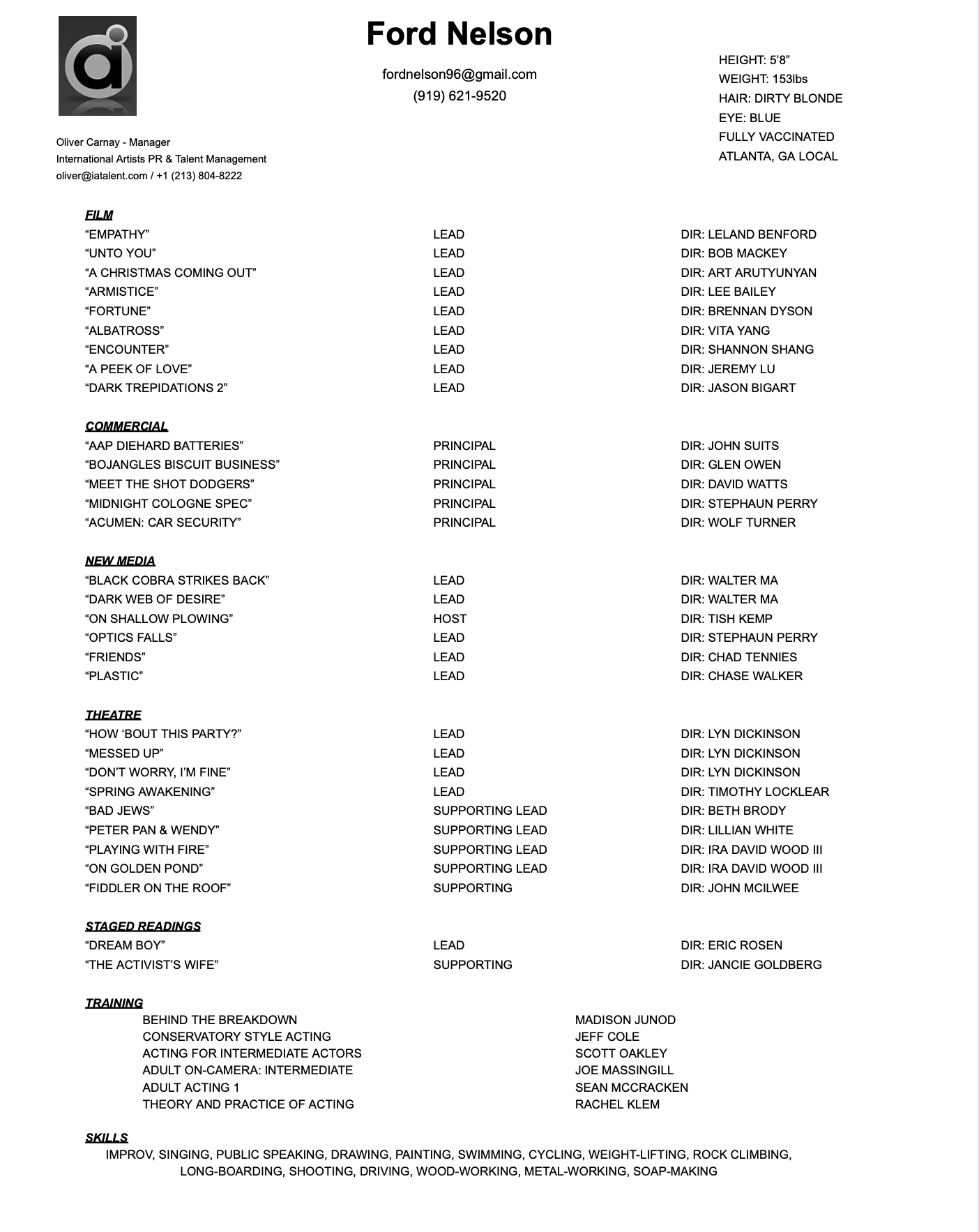 Scroll for more Headshots Footage Get to know more of my work on my other online profiles: Actors Access Instagram IMDb